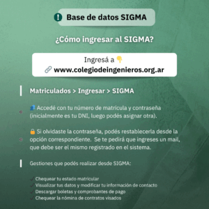👉 Desde el Distrito 5 trabajamos para lograr una comunicación eficiente 👷 Te solicitamos mantengas actualizados tus datos en SIGMA 😉 Podes ingresar a través de nuestra web www.ci5.org.ar desde el menú Autogestión, mediante la opción «Ingreso SIGMA» Noticias Relacionadas 5 noviembre, 2025CENA DE CAMARADERÍA Y ENTREGA DE MEDALLAS 5 noviembre, 2025CONVENIO PARA ACCEDER A CURSOS Y CAPACITACIONES 29 octubre, 2025TOKEN AL COSTO EN EL DISTRITO V PrevNext